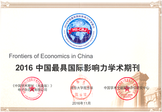 Jointly conducted by China Academic Journals (CD) Electronic Publishing House and Tsinghua University Library, the 2016 Annual Report collected the total international cites of 6169 academic journals run by Chinese universities, institutes or publishers. Based on such data and the impact factor, the journals’ impact indexes are formulated, and the top 5% (incl. 175 in science and technology and 60 in humanities and social sciences altogether) make up the list of "2016 The Highest International Impact Academic Journals of China". Among the 60 journals in humanities and social sciences on the list, only two are English language journals in economics.